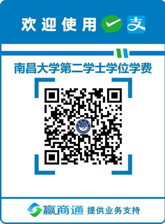 用微信或支付宝扫描下方南昌大学收款二维码,根据第二学位专业学费及住宿费收费表格,输入缴费金额后点击备注填写:本人本科期间学号和姓名。